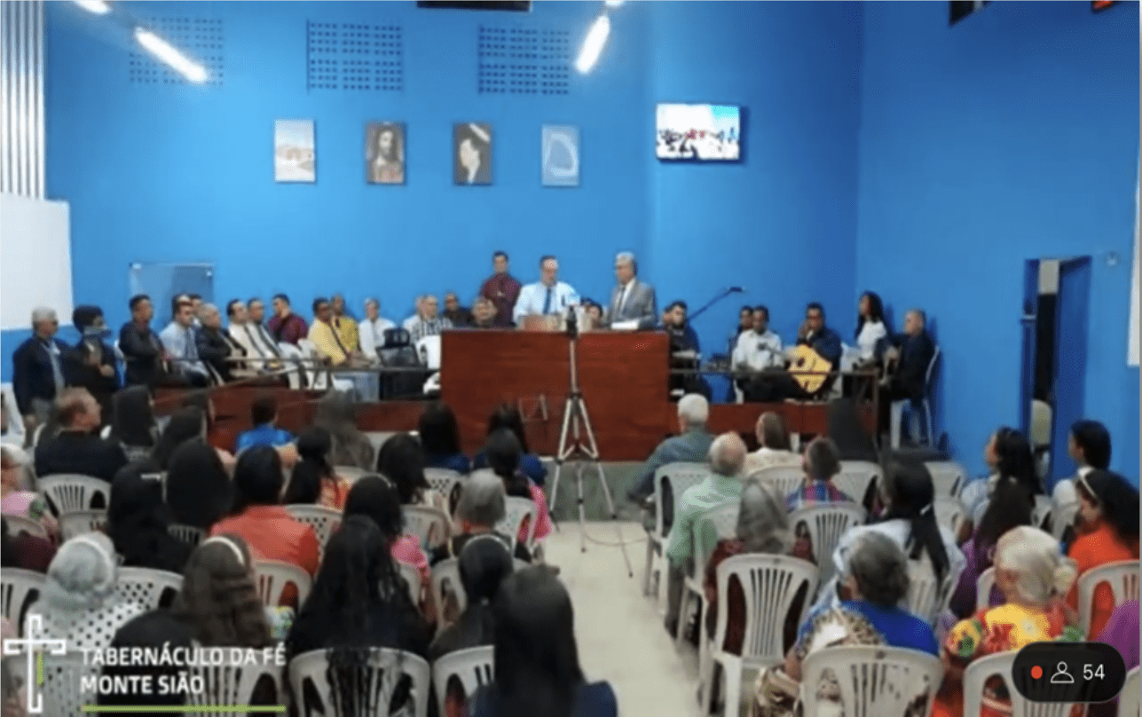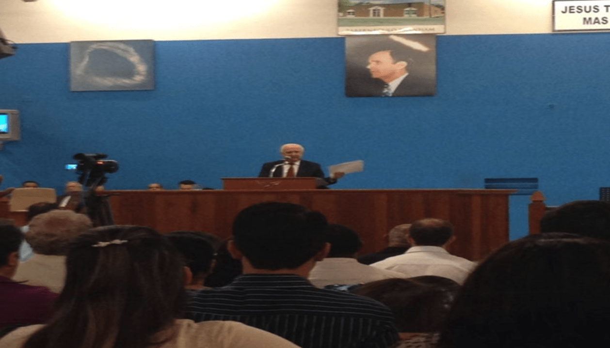 Um outro ponto importantíssimo para analisarmos é a respeito dos símbolos e imagens dentro das congregações Branhamistas. Precisamos compreender que os símbolos expressam de forma silenciosa as crenças que aderimos. A crença de um povo está explícita primeiramente nos seus símbolos que fazem parte da liturgia e que, por sua vez, influenciam o comportamento dos fiéis. Podemos citar como exemplo o Tabernáculo Branham, onde há a foto de Branham no meio entre dois crucifixos.